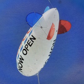 Helium blimps are available in a range of colours, can be fully branded, and can be made in a range of sizes from 3m to 12m long.