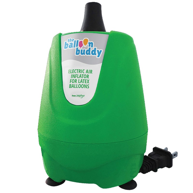 The Balloon Buddy inflates with air. Air-filled balloons do not float. Never look into or point The Balloon Buddy at the eyes or face of yourself or another person. Never obstruct the inflation port or overheating or damage may occur. Do not use The Balloon Buddy continuously for more than two hours at a time. Do not attempt to use The Balloon Buddy to fill foil balloons. The Balloon Buddy is not a toy. Keep out of the reach of children. Do not store or use The Balloon Buddy in wet conditions. No batteries required!