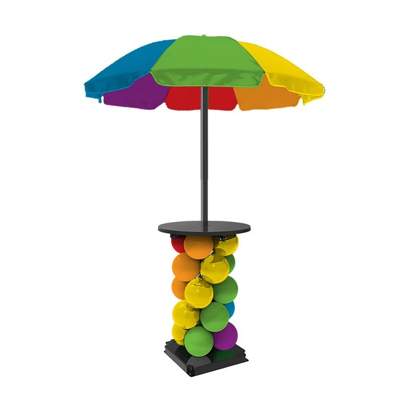 Standard at five balls high and crafted from twenty recycled plastic balls. Need a different height? No problem. Our standing table is customisable to suit your needs. Suitable for both indoor and outdoor settings, they withstand sun and rain effortlessly, with or without lighting. Equipped with wheels for effortless mobility, it seamlessly adapts to any space. Utilise our configurator to design your own colour combinations, with options to match your corporate identity colours upon request.