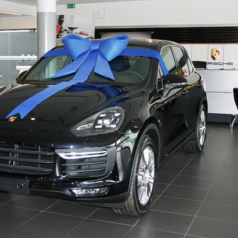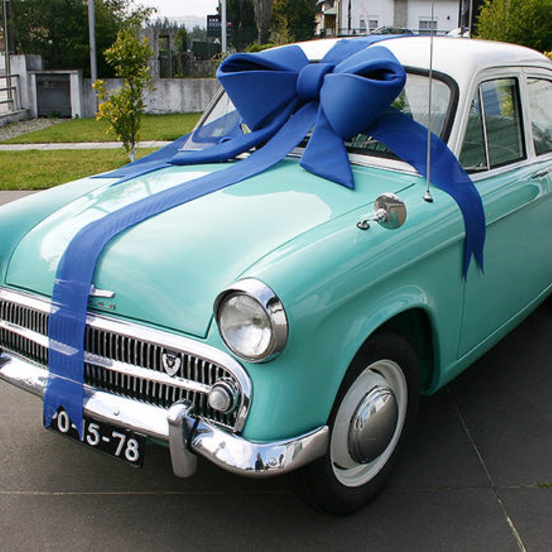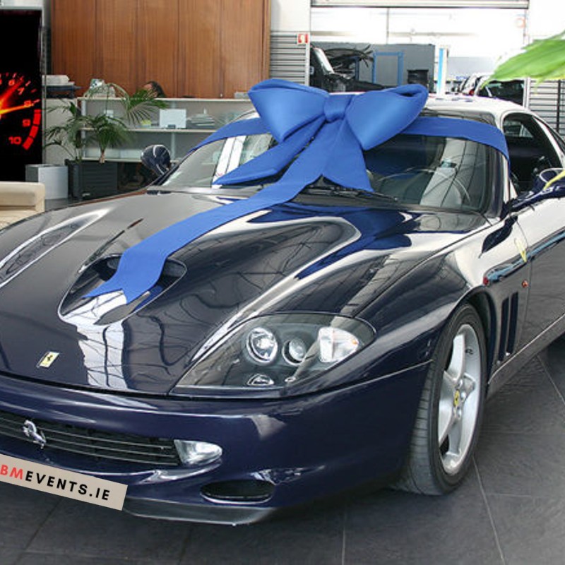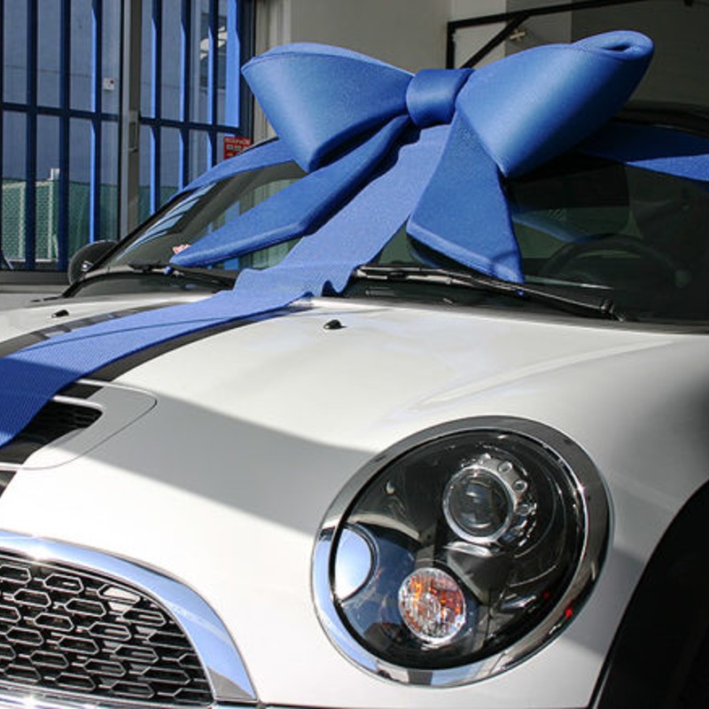 In addition to the bow, there are two ribbons in the same fabric, for the finishing touch, whether around the car or a building facade, or shop window.