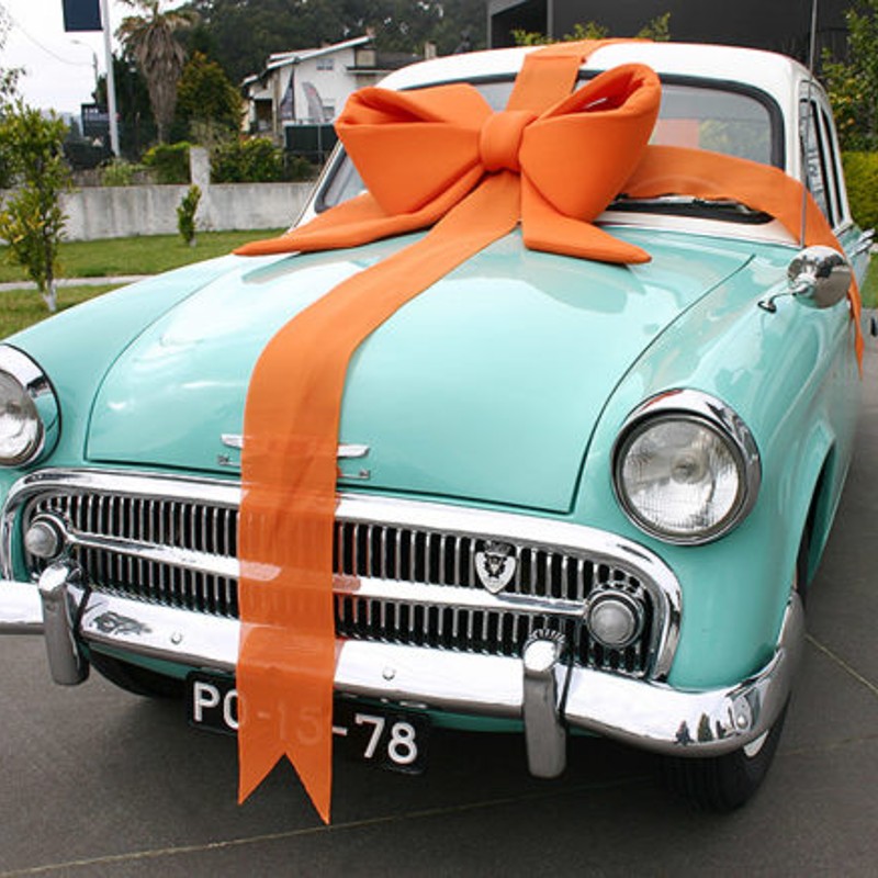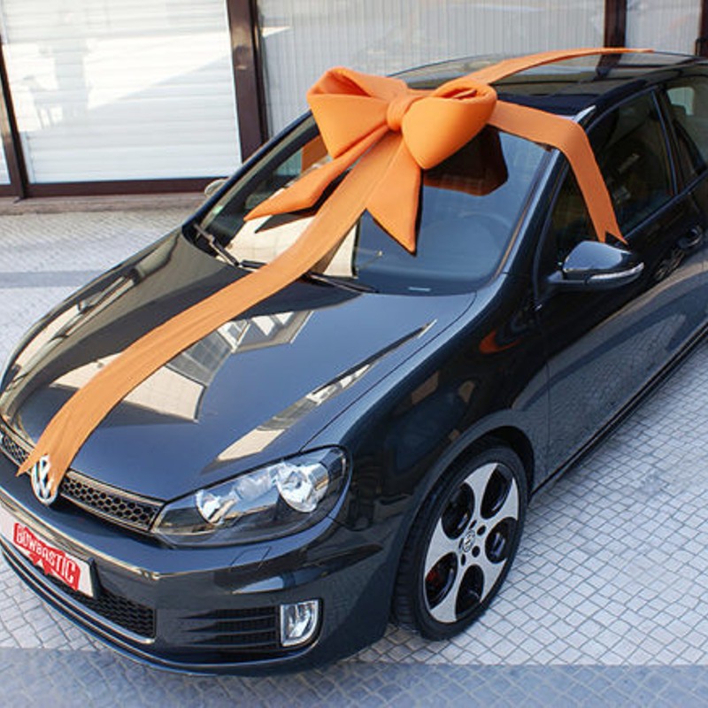 In addition to the bow, there are two ribbons in the same fabric, for the finishing touch, whether around the car or a building facade, or shop window.