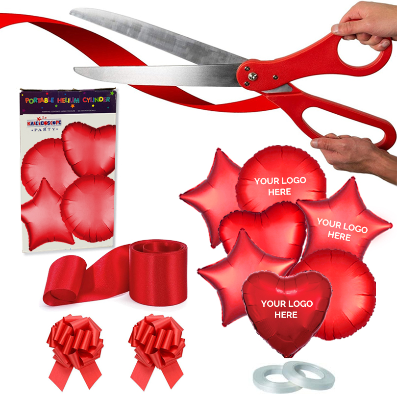 Our Ribbon Cutting Ceremony Kit is ideal for any Grand Opening Ceremony or special occasion and comes complete with everything you need.  The big scissors measure 25” when closed and are made from heavy duty metal with PVC handles.