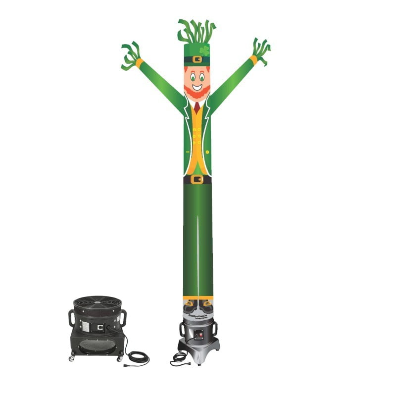 Happy Paddy 20ft Sky Dancers inflatable tube man and blower complete set by Balloon Man. The 20ft tall green inflatable inflatable tube guy is the perfect way to attract and promote your retail store, forecourt, open house, sale, event, promotion, or just about anything you can think of. The complete set comes a green inflatable tube man and a 18-inch blower; everything you need to operate your Sky Dancer inflatable tube man. The height of the 20ft outdoor advertising products is ideal for any business or event with limited space.