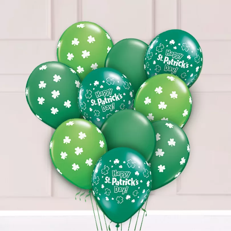 Contact Us To OrderOur St Patricks Day Balloon Bouquets are made up of varying numbers of helium filled latex balloons treated with hi-float solution for extended life.